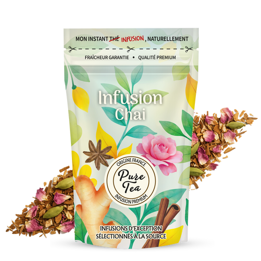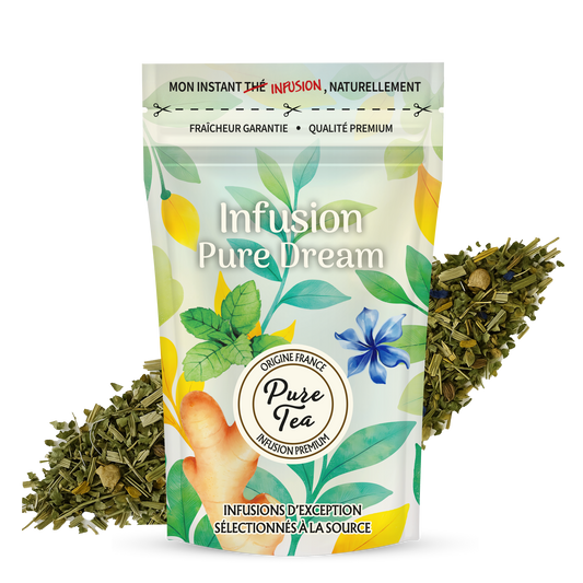 Contrairement aux thés classiques issus du théier Camellia sinensis, nos infusions et tisanes sont préparées à partir de plantes, herbes, épices et fruits séchés. Elles ne contiennent naturellement aucune théine ni caféine, permettant une consommation à tout moment de la journée. Nos mélanges comme Pure Sérénité ou Pure Dream associent des plantes aux vertus complémentaires pour créer des expériences gustatives uniques et des bienfaits ciblés selon vos besoins.
