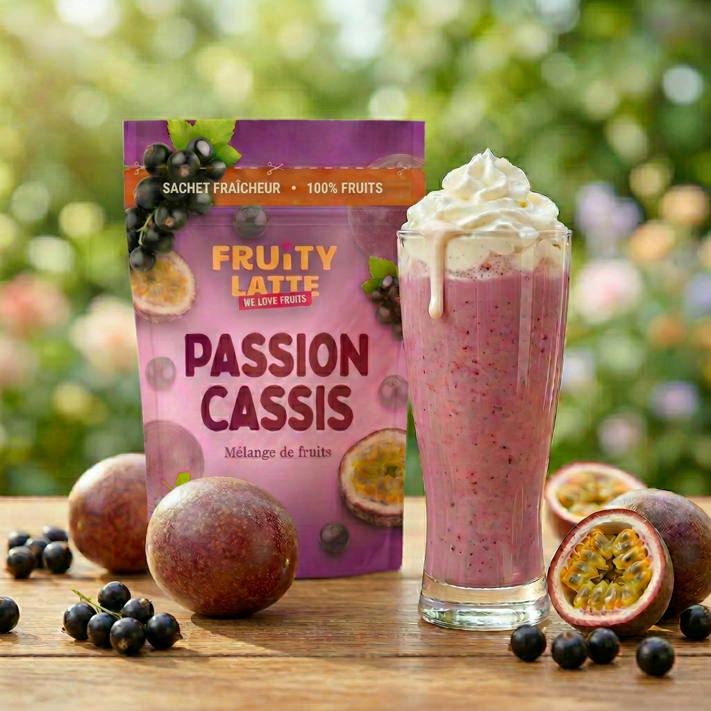 Ce n'est pas qu'un plaisir gustatif, c'est aussi un concentré de bienfaits naturels. Le cassis est l'un des fruits les plus riches en vitamine C et en antioxydants (anthocyanes, polyphénols), reconnus pour soutenir l'immunité et protéger les cellules. Le fruit de la passion apporte vitamine C, vitamine A et des fibres qui favorisent une bonne digestion, ainsi qu'un effet relaxant naturel. La datte complète avec des fibres, du fer et une énergie progressive sans pic glycémique. En résumé : tu te fais plaisir tout en prenant soin de ton corps. 🌿