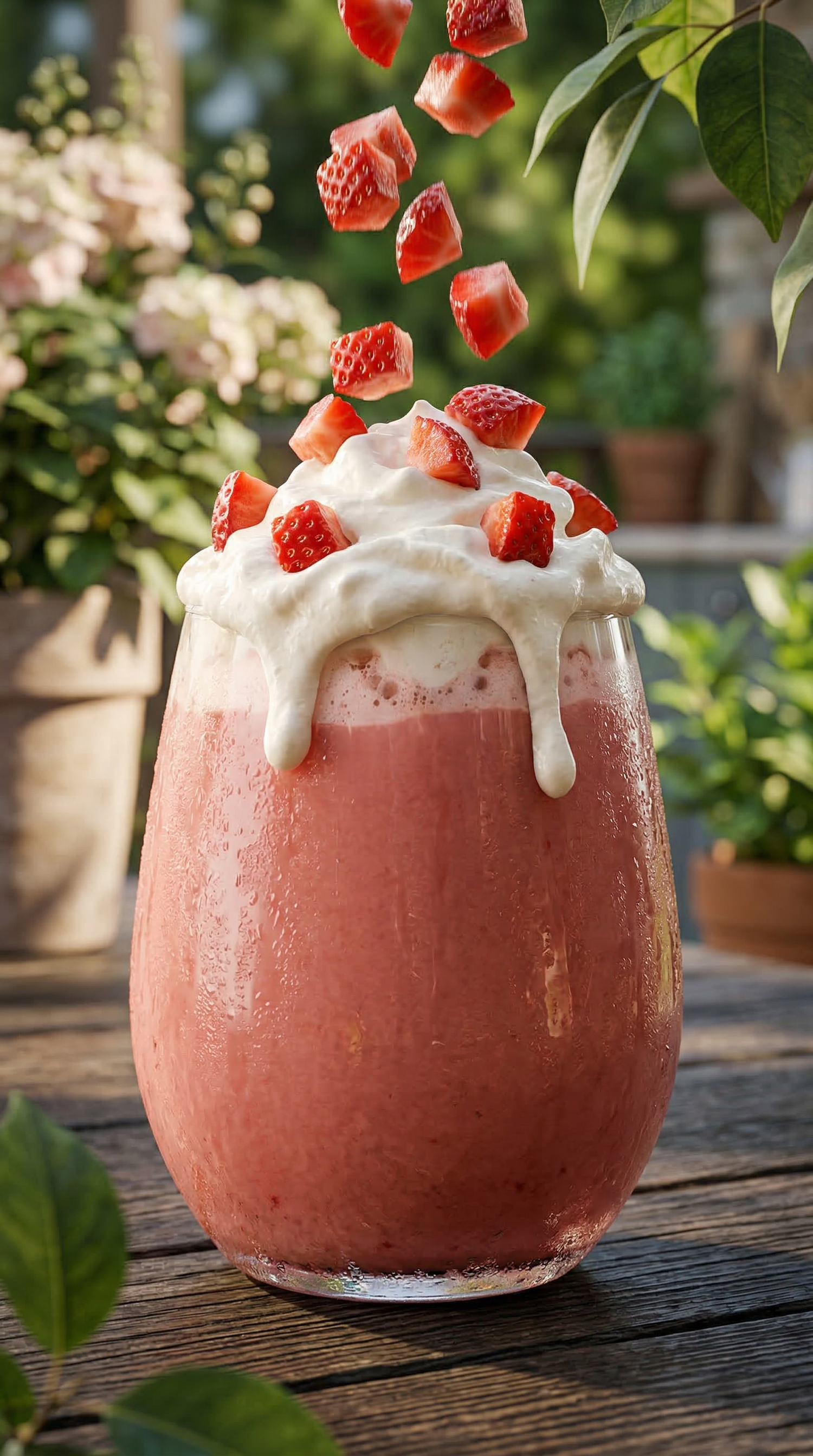 🍓 La Fraise : La star de la recette. Elle apporte sa fraîcheur acidulée et sa couleur rose-corail naturelle qui rend chaque tasse instagrammable. Riche en vitamine C, en antioxydants et en fibres, elle booste ton immunité et protège tes cellules. Son léger goût pétillant équilibre parfaitement la rondeur de la banane et de la mangue.